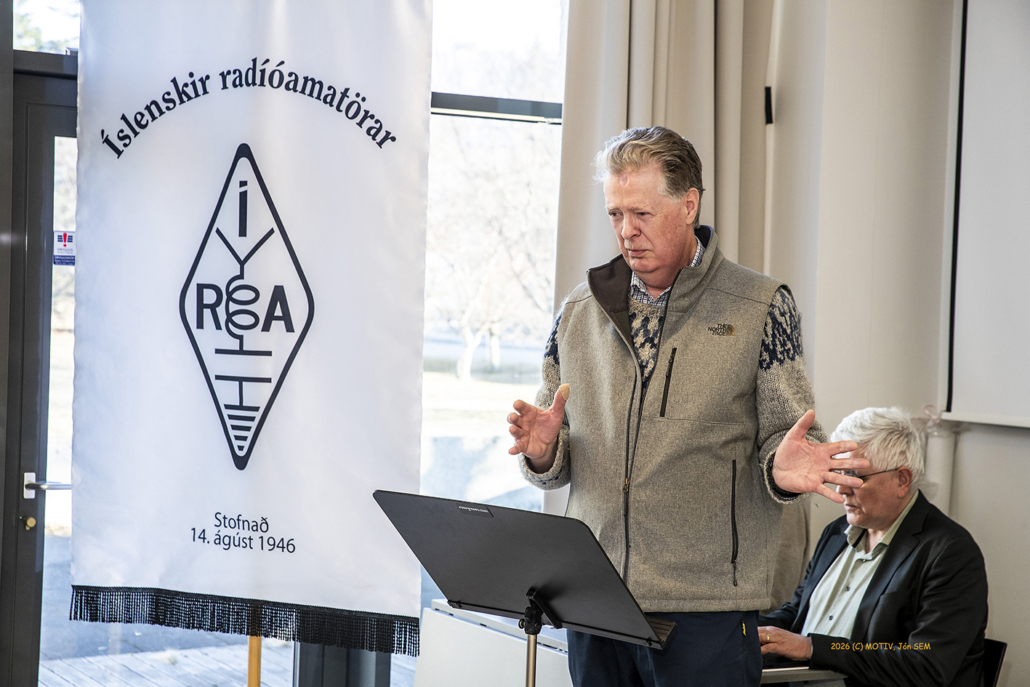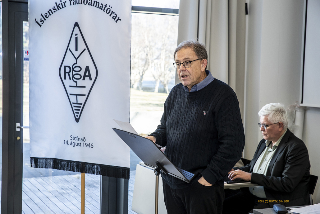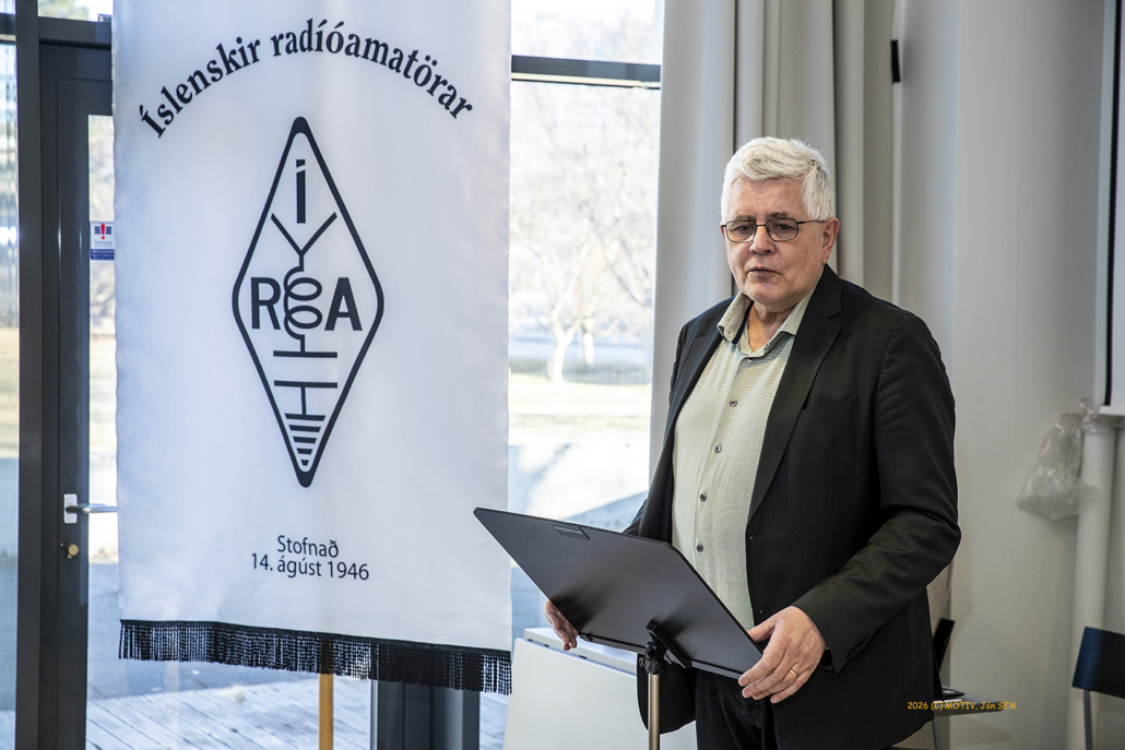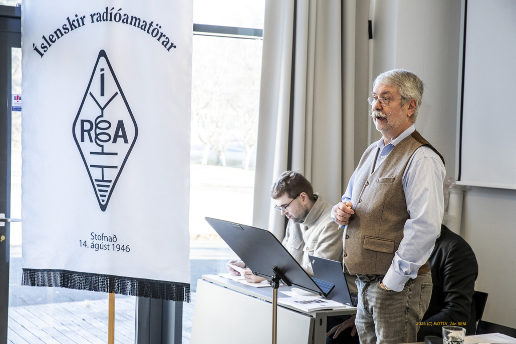 Aðalfundur ÍRA 2026 var haldinn í safnaðarheimili Neskirkju í Reykjavík 15. febrúar. Fundarstjóri var kjörinn Vilhjálmur Í. Sigurjónsson TF3VS og sést hann hér í ræðupúlti.Jónas Bjarnason TF3JB, formaður ÍRA flutti framlagða skýrslu stjórnar fyrir starfsárið 2025/26.Jón Björnsson TF3PW gjaldkeri ÍRA flutti framlagðan ársreikning félagssjóðs fyrir rekstrarárið 2025.Mynd úr fundarsal.Sveinn Goði Sveinsson TF3ID, Guðjón Már Gíslason TF3GMG, Finnur Tómasson TF3FT, Einar Kjartansson TF3EK og Hans Konrad Kristjánsson TF3FG. Aftast til vinstri: Halldór Karl Högnason TF3DK.Ari Þórólfur Jóhannesson TF1A, Erling Guðnason TF3E, Gísli Gissur Ófeigsson TF3G og Þór Eysteinsson TF3TE. Aftari röð: Rúnar Þór Valdimarsson TF3RJ og Halldór Karl Högnason TF3DK. Aftasta röð: Hinrik Vilhjálmsson TF3VH, Anna Henriksdóttir TF3VB og Bernhard M. Svavarsson TF3BS.Kristinn Andersen TF3KX formaður Prófnefndar ÍRA gaf skýrslu um starfsemi nefndarinnar á árinu. Hann ræddi einnig störf í vinnuhópi IARU Svæðis-1 um uppfærslu HAREC námsefnis þar sem hann er fulltrúi ÍRA ásamt TF3KB.Kristján Benediktsson TF3KB alþjóðafulltrúi ÍRA gaf skýrslu um störf sín. Hann ræddi m.a. fund IARU sem haldinn var í París í fyrra (2025) þar sem hann var fulltrúi ÍRA á 100 ára afmæli IARU. Hann fjallaði ennfremur um störf þeirra TF3KX í vinnuhópi IARU Svæðis-1 um uppfærslu HAREC námsefnisins.Sæmundur E. Þorsteinsson TF3UA ritstjóri CQ TF og formaður í EMC nefndar ÍRA fjallaði annarsvegar um störf ritnefndar CQ TF sem gaf út 4 tölublöð á starfsárinu og hinsvegar um EMC málefni.Andrés Þórarinsson TF1AM varaformaður ÍRA, fjallaði um störf sín að baki þess að semja fræðsludagskrár félagsins sem eru tvær á hverju starfsári, vor og haust. Hann þakkaði sérstaklega þeim félagsmönnum sem flutt hafa erindi og ennfremur góða aðsókn almennra félagmanna að þeim viðburðum í Skeljanesi. Vilhjálmur Í. Sigurjónsson TF3VS var lýstur heiðursfélagi ÍRA á aðalfundi félagsins 2026. Á myndinni tekur hann við innrömmuðu heiðursskjali og blómavendi úr höndum Jónasar Bjarnasonar TF3JB formanns ÍRA.Nýkjörnir stjórnarmenn ÍRA starfsárið 2026/27. Jón Björnsson TF3PW, Njáll H. Hilmarsson TF3NH, Georg Kulp TF3GZ, Heimir Konráðsson TF1EIN, Sæmundur E. Þorsteinsson TF3UA, Andrés Þórarinsson TF1AM og Jónas Bjarnason TF3JB.